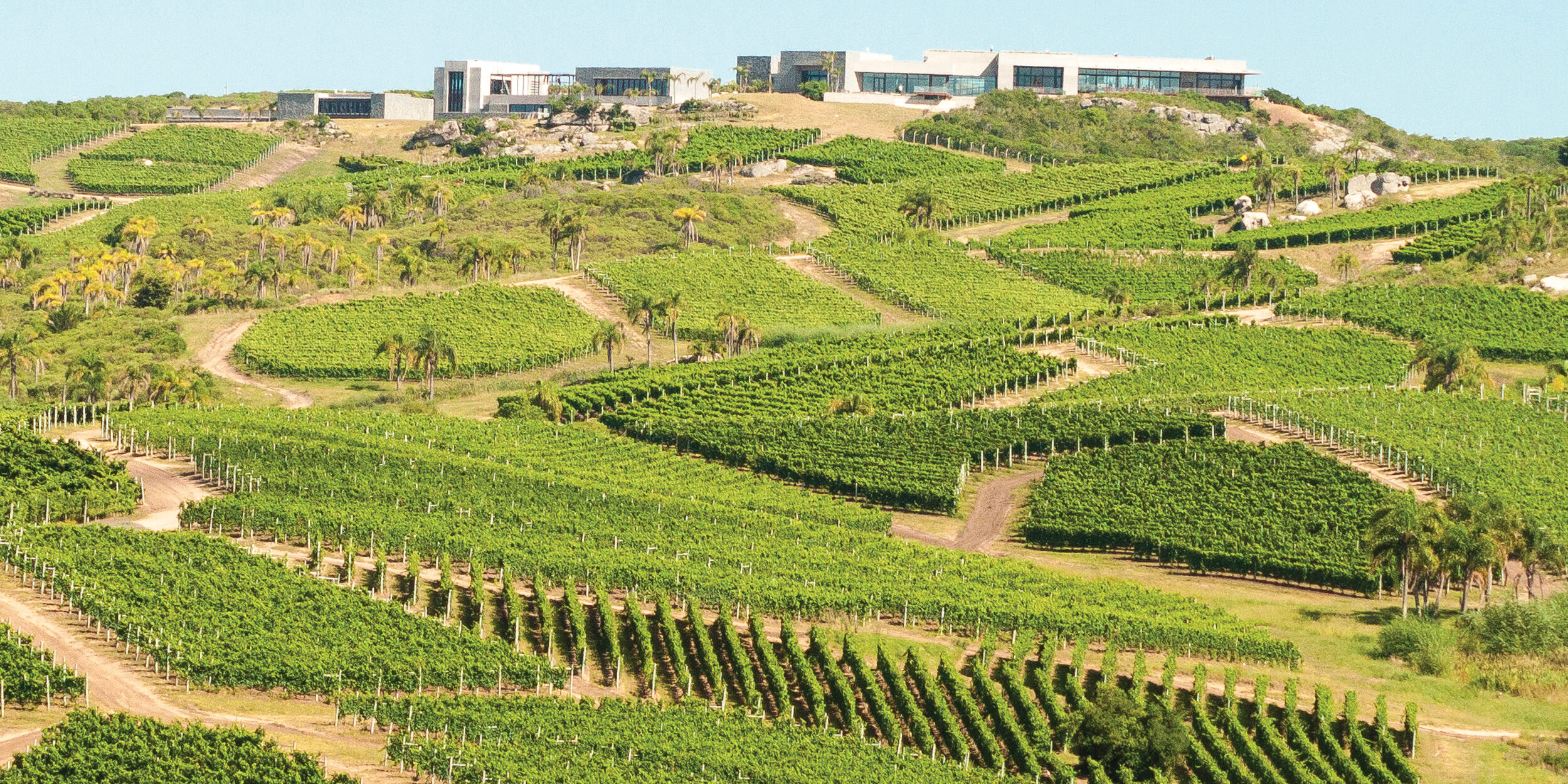 Just northwest of Punta del Este, the wind howls off the ocean and sweeps across vines that look as if they are clutching at the granite and quartz rock. Here, roughly 16 miles inland, Viña Edén stands at 560 feet above sea level, against the Pueblo Edén mountains. It’s a completely different landscape than Canelones, the rolling hills composed of ancient granite with veins of white and gray quartz. And there’s the ocean wind—“the virazón,” director Mauricio Zlatkin calls it—sweeping off the Atlantic, often carrying mist that spatters the three-story walls of glass at the winery.