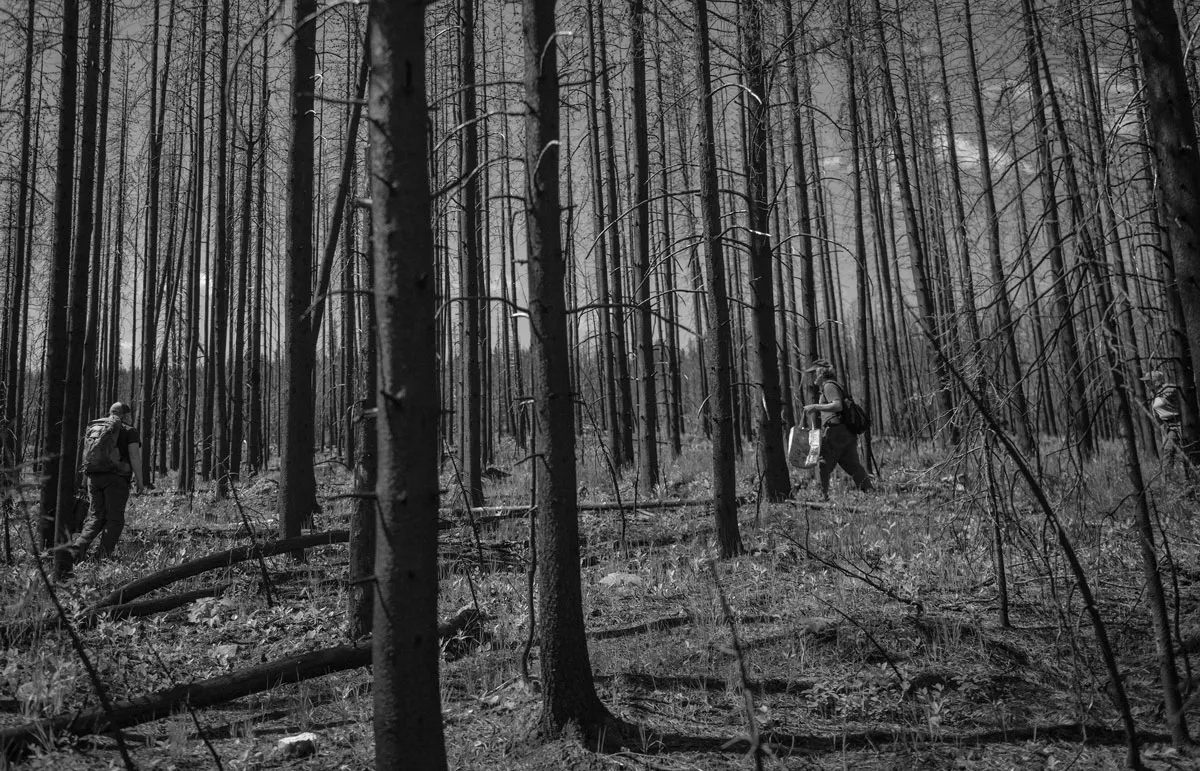 We’re in central Montana, high up in the Crazy Mountains and the Custer Gallatin National Forest. It’s mid-July. The year prior, a lightning-sparked wildfire burned here for weeks, charring soil and blackening nearly 22,000 acres of predominantly conifer forest.